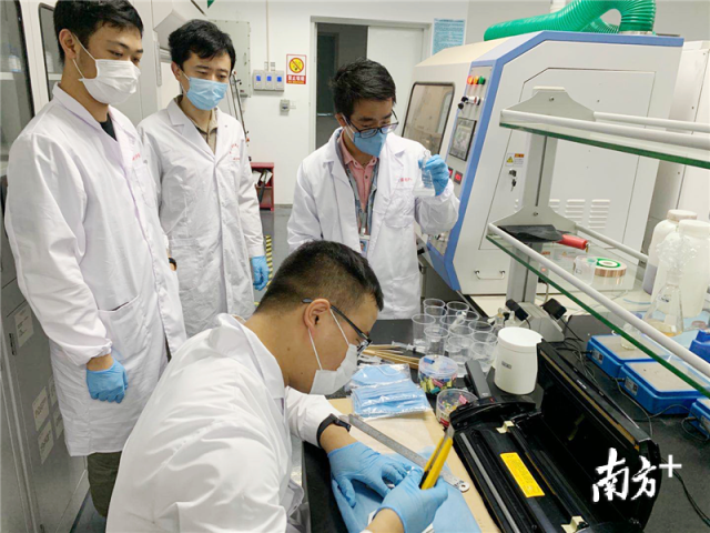 为防疫事业攻克最急迫的技术,赶制最紧缺的物资,不可能一蹴而就。东莞制造业水平的提升,离不开企业持续投入研发的决心与魄力。近年来,在与高等院校以及科研机构的协同创新、联合攻关下,东莞制造早已迈上了一个新的台阶。3月19日,在松山湖材料实验室,李明星博士后正在研究非晶合金材料。前不久,汪卫华院士、李明星博士后、柳延辉研究员团队的研究成果“基于材料基因工程研制出高温块体金属玻璃”,入选“2019年中国科学十大进展”。这也是东莞有史以来,第一次有科研成果入选“中国科学十大进展”。